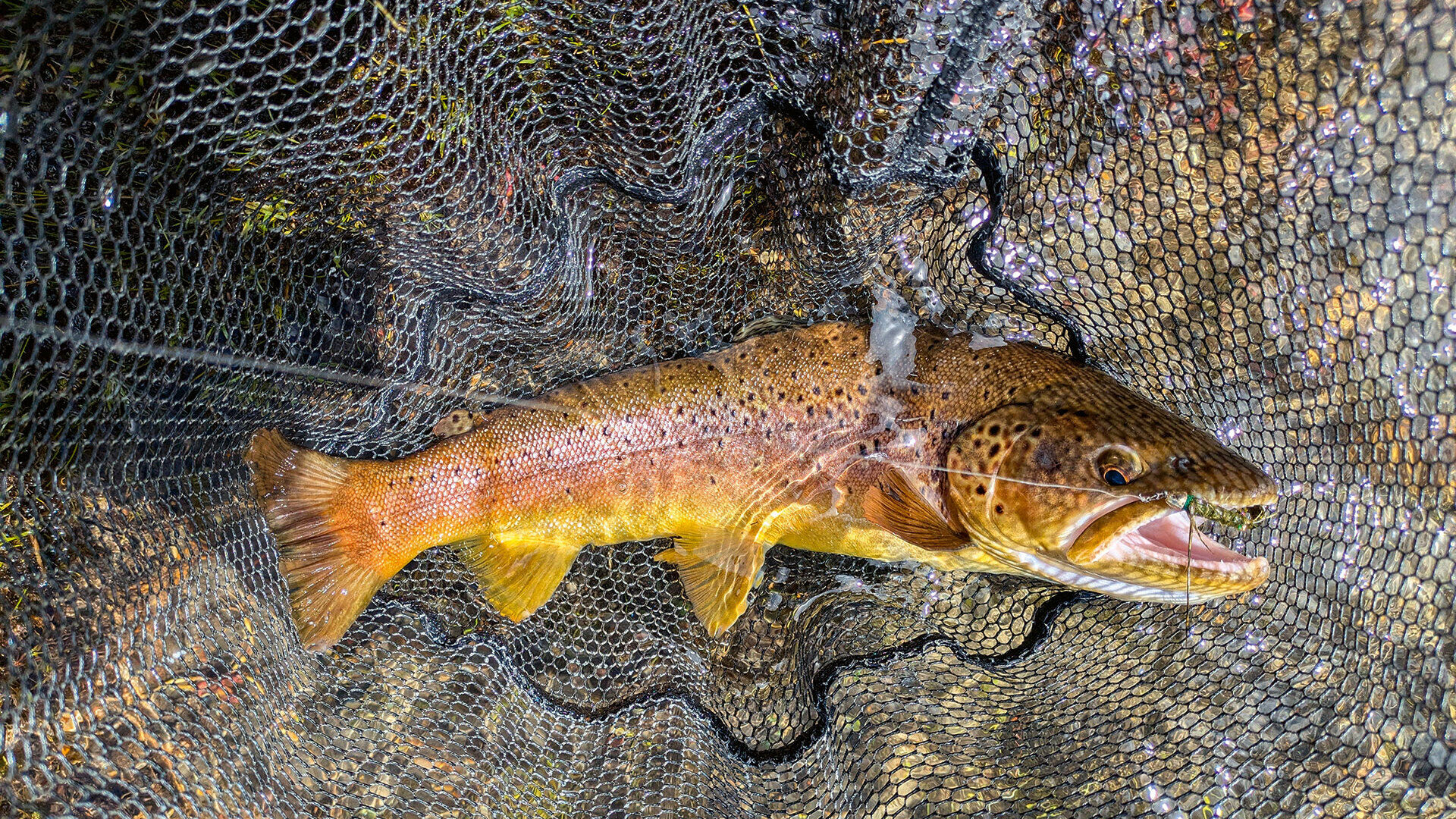 Die beiden sind noch nicht ausser Sicht, da habe ich meine Streamerrute bereits demontiert. Ans Ende des Vorfachs binde ich einen selbstgebundenen «Heugümper». Und tatsächlich! Fische, die meine Avancen bisher abgewiesen haben, steigen zur Oberfläche und lassen sich fangen.