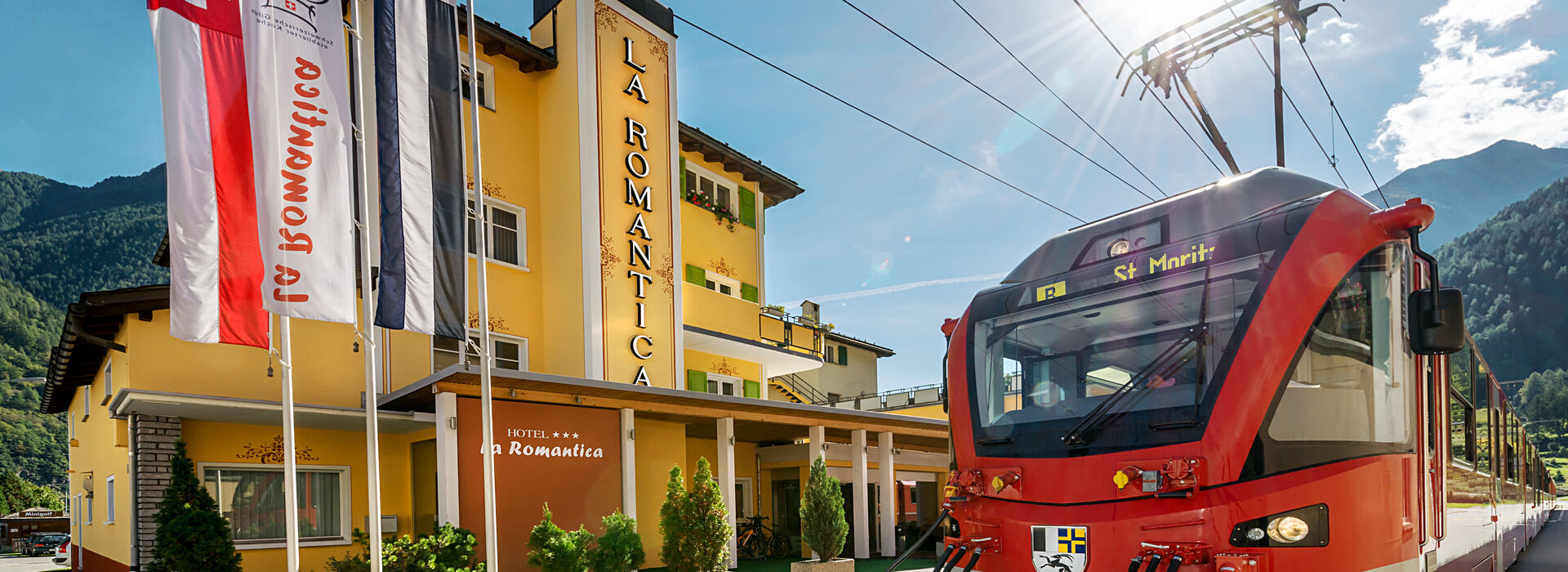 Das Hotel liegt inmitten des Feriendorfes Le Prese in der absolut ruhigen Landschaft gleich neben dem See. In einer Minute gelangt man mit den Velos vom La Romantica ans Seeufer oder in einer halben Stunde auf die autofreie Piazza von Poschiavo.
