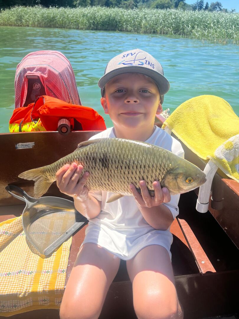 Am 29. Juni gelang Maël Schwab aus Ins ein schöner Fang. Am frühen Nachmittag stieg auf die fein präsentierte Bienenmade an der Zapfenmontage eine grosse Schwarzfeder ein. Nach einem kurzen, aber lebhaften Drill konnte das Prachtexemplar gefeumert werden. Die Freude über diesen Ausnahmefang war Maël anzusehen.