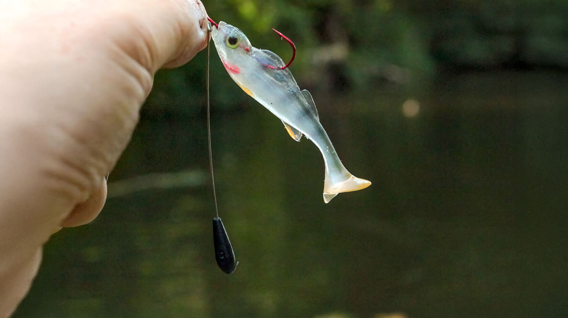 Das Tokyo-Rig stammt, wie der Name schon vermuten lässt, aus Japan. Mit dieser neuen Montage, die an die Dropshot-Montage (nur ohne Schnur zwischen Blei und Köder) erinnert, lassen sich die Egli hervorragend in Grundnähe fangen. Das Gewicht bei dieser Montage befindet sich am unteren Ende des Rigs auf einem Drahtarm, an dem sich oben ein Ring oder Wirbel befindet. In einen Sprengring wird das Gewicht mit Drahtarm eingehängt. Auch der Haken und ein weiterer Wirbel zur Montage an der Hauptschnur wird auf dem Sprengring montiert. Wichtig ist immer, dass sich das Blei unterhalb und der Einhänger oberhalb des Hakens befinden. Der Haken steht nun ganz leicht nach unten ab – wie bei einer Dropshot-Montage. Bestückt man ihn mit einem auftreibenden Gummifisch oder Creature Bait, steht der Greifer perfekt im 90-Grad-Winkel vom Drahtarm ab und kann die Egli ideal haken.