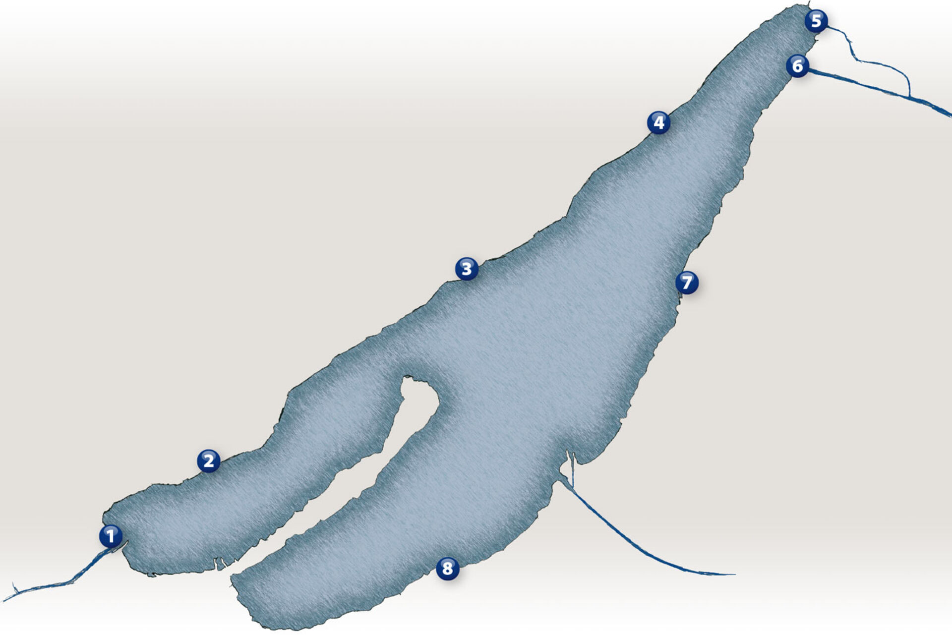 Toutes les eaux des lacs de Brienz, de Thoune, de Morat et de Neuchâtel passent par le lac de Bienne. Les affluents sont l'Aar, le Zihlkanal, la Schüss et le Twannbach. A marée haute, on peut même voir un courant dans certaines parties du lac. Et le lac de Bienne est un plan d'eau riche en nutriments - des conditions idéales pour une bonne et diverse population de poissons.