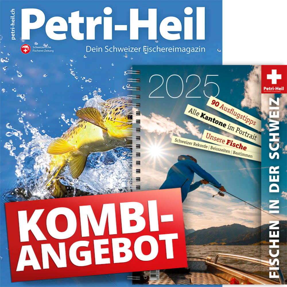 Bestelle das «Petri-Heil»-Abo und das Buch «Fischen in der Schweiz» im Kombi, und Du bist bestens gerüstet für die Fischerei in der Schweiz.