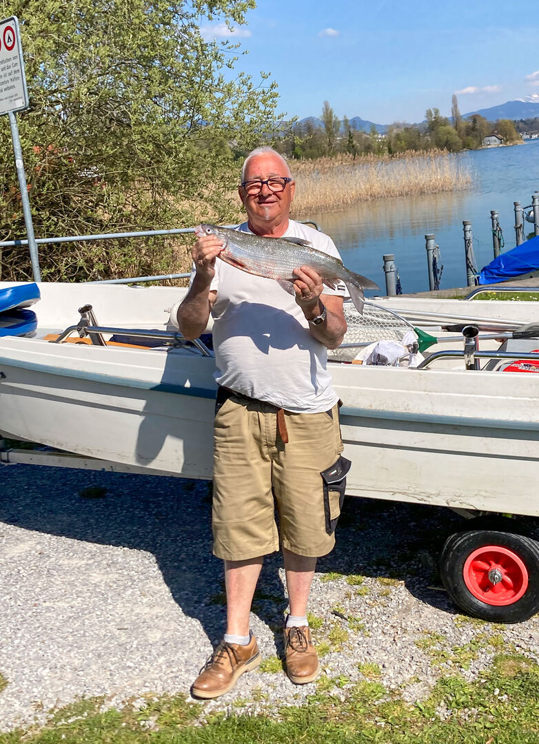 Giuseppe Zenca aus Rüti ZH fing am 10.?April diese Felche vom Boot aus mit Felchenzapfen und Hegene, die sein Kollege Bruno Ianotta selbst gebaut hatte. Das Wetter war angenehm warm, der Biss erfolgte um 14 Uhr.