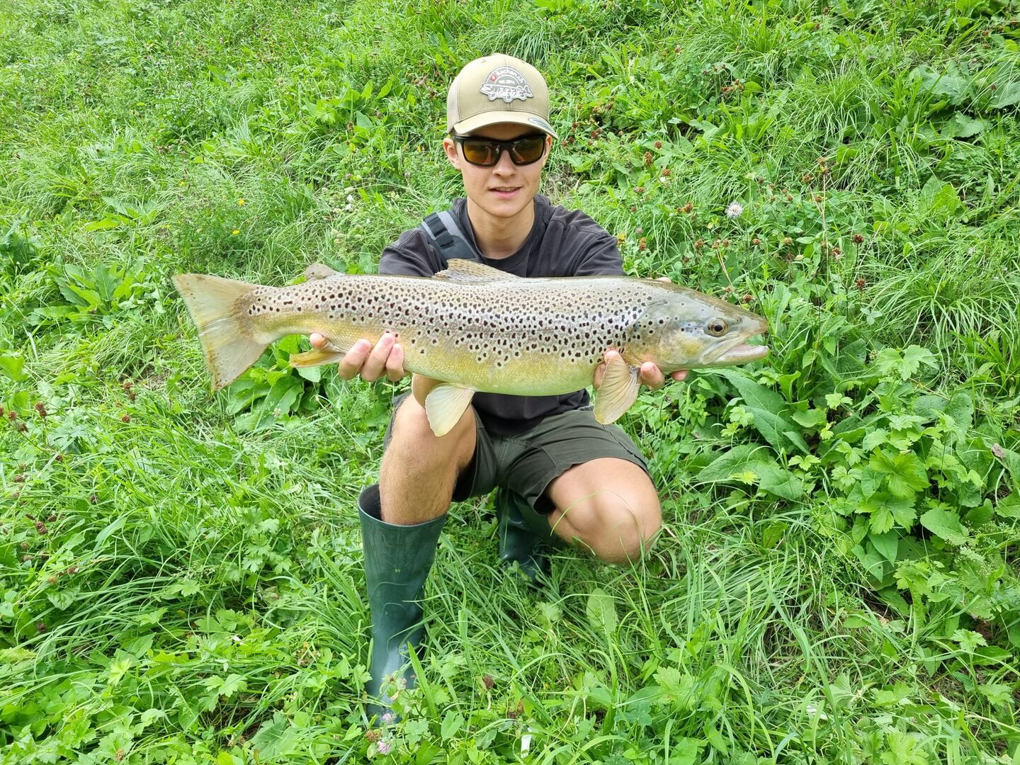 Nicolas Helm aus Kilchberg versuchte am 27. August trotz schwieriger Bedingungen mit trübem Wasser und leichtem Regen sein Glück und wurde nach einigen Stunden mit dieser wunderschönen Forelle belohnt, welche seinen Bienenmaden nicht widerstehen konnte.