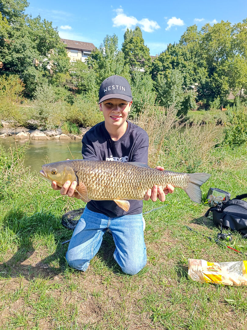 Nilo Strebel aus Sissach fischte am 4. August an der Birs. Um 16.15 Uhr konnte er diesen kapitalen Alet fangen.