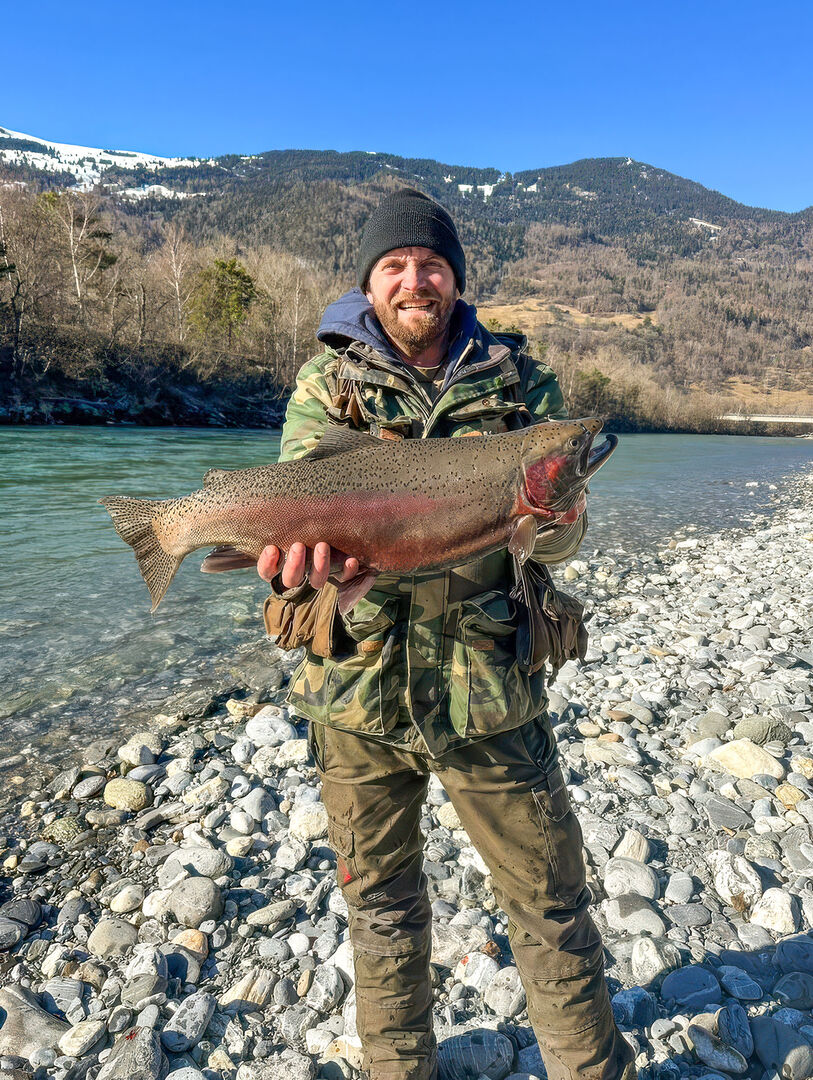 Claudio Böni aus Molinis konnte am 2. Februar jubeln. Er fischte mit einer Bienenmade am Tirolerhölzel. Nach einem erfolglosen Morgen biss der prächtige Alpensteelhead kurz nach 12 Uhr.